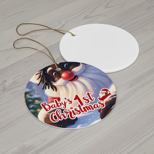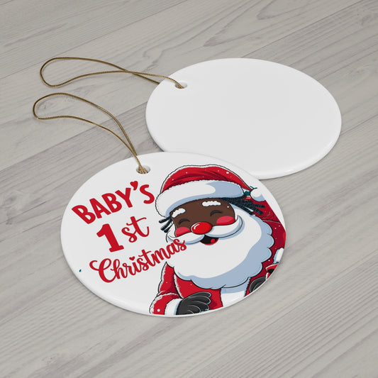 Ceramic Ornament - Baby's First Christmas, Santa Design, Red and White, Holiday Decoration, Tree Ornament, Baby Gift
