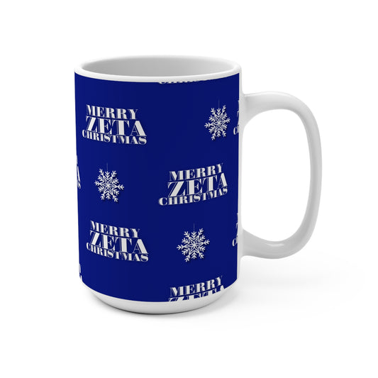 Merry Zeta Christmas Holiday Sorority Inspired Christmas Mug 15oz Royal Blue and White, Christmas Gift, Sorority Sister Present,