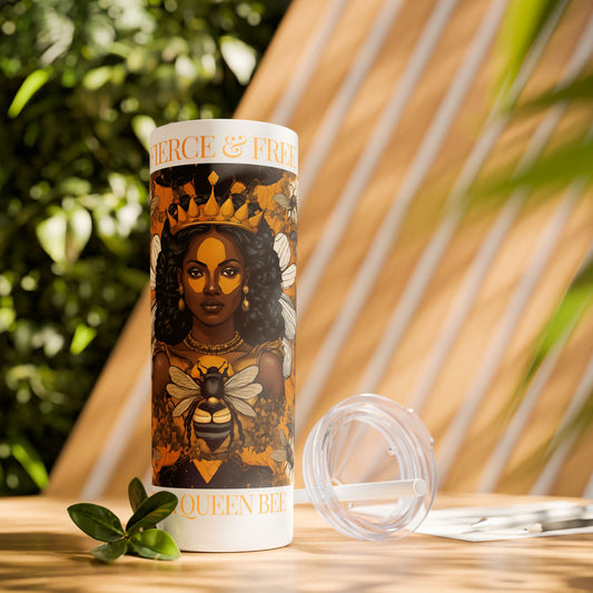 Queen Bee..Fierce & Free Skinny Tumbler with Straw, 20oz