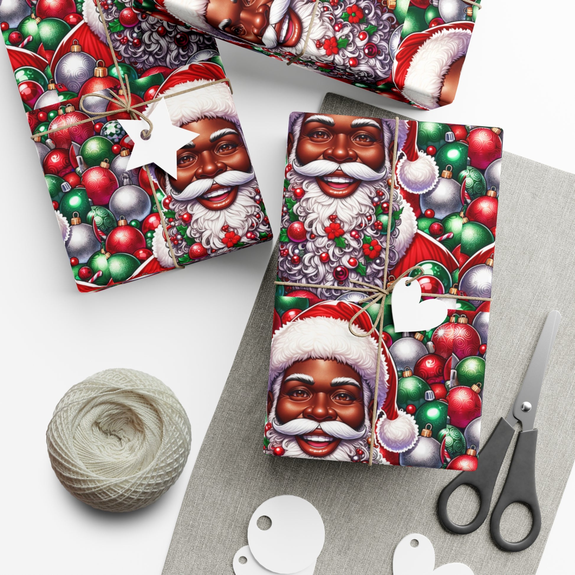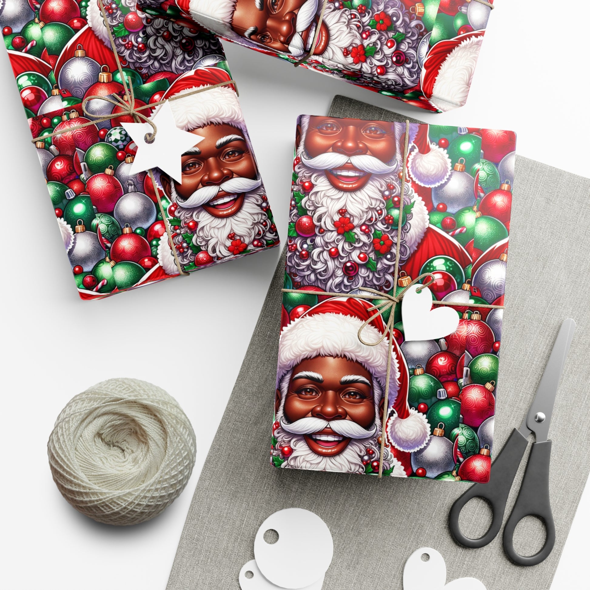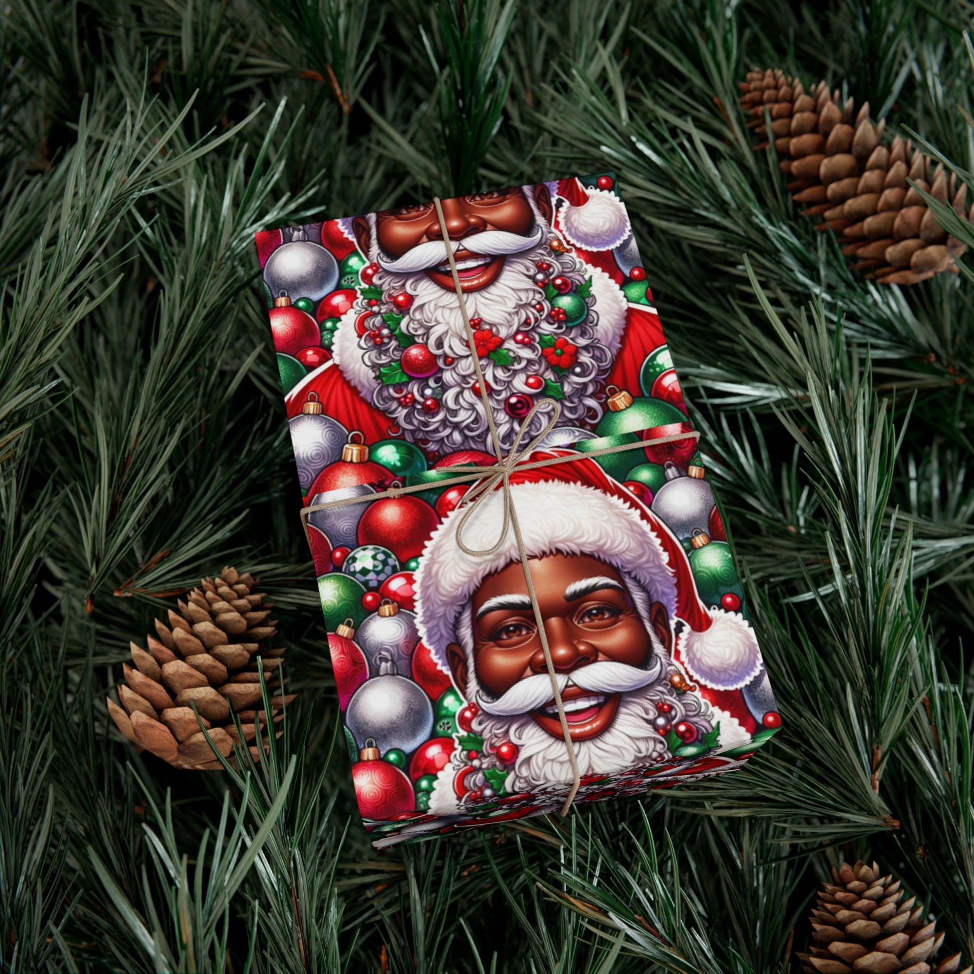 Christmas Cheer Wrapping Papers, Festive African American Santa Gift Wrap, HoliRosy Cheeks, Nose, Xmas Spirit Decor, P