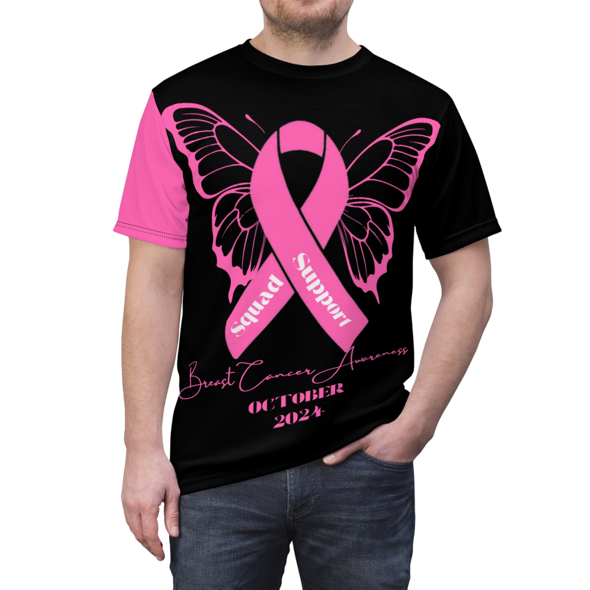This tee was created to be a versatile and stylish companion for all your casual appearances. Hot Pink and Black with the Breast Cancer Butterfly and Ribbon. With its uniquely textured, thick, microfiber-knit fabric, this t-shirt bears a premium, soft feel that remains lightweight and highly breathable – the perfect combo for a hot day or layering.