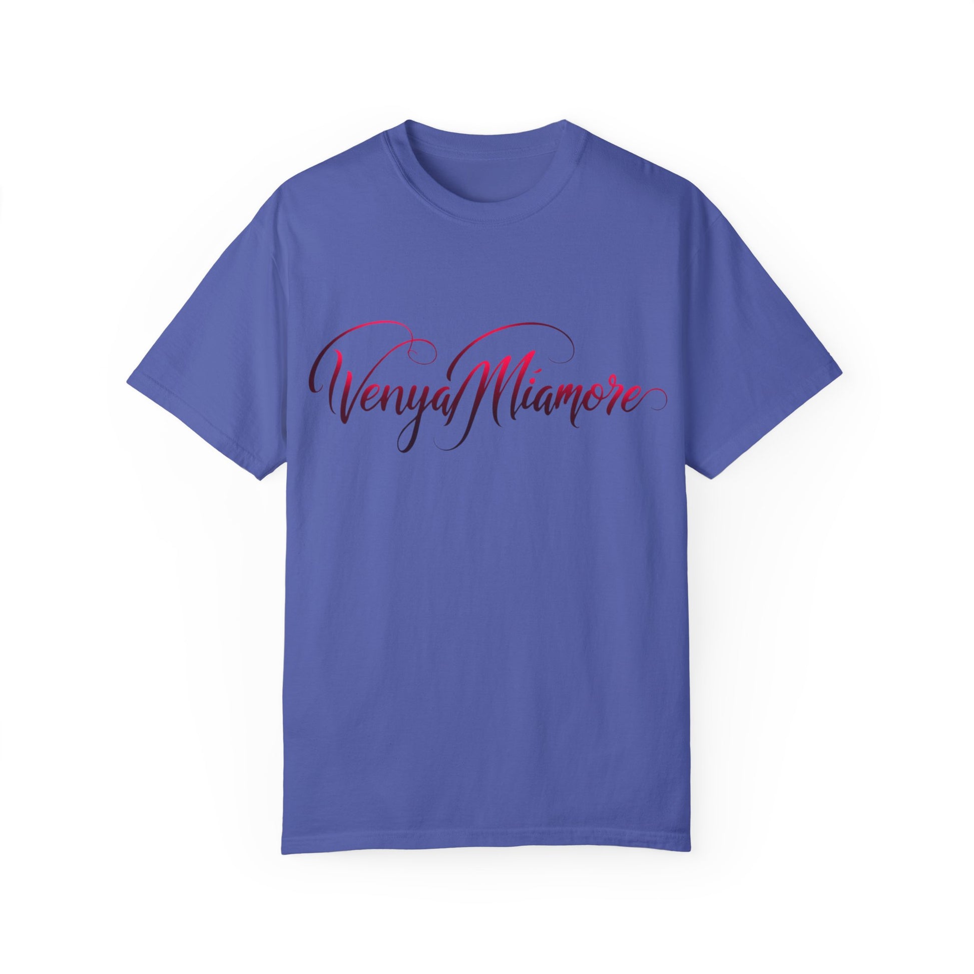 A classic, unisex T-shirt featuring the Venya MiAmore logo in an elegant script font, with a stylish blend of black and red tones. Made of soft, high-quality fabric for comfort and durability. Perfect for casual wear or showing support for Venya MiAmore’s brand. A versatile and stylish addition to any wardrobe, suitable for adults.